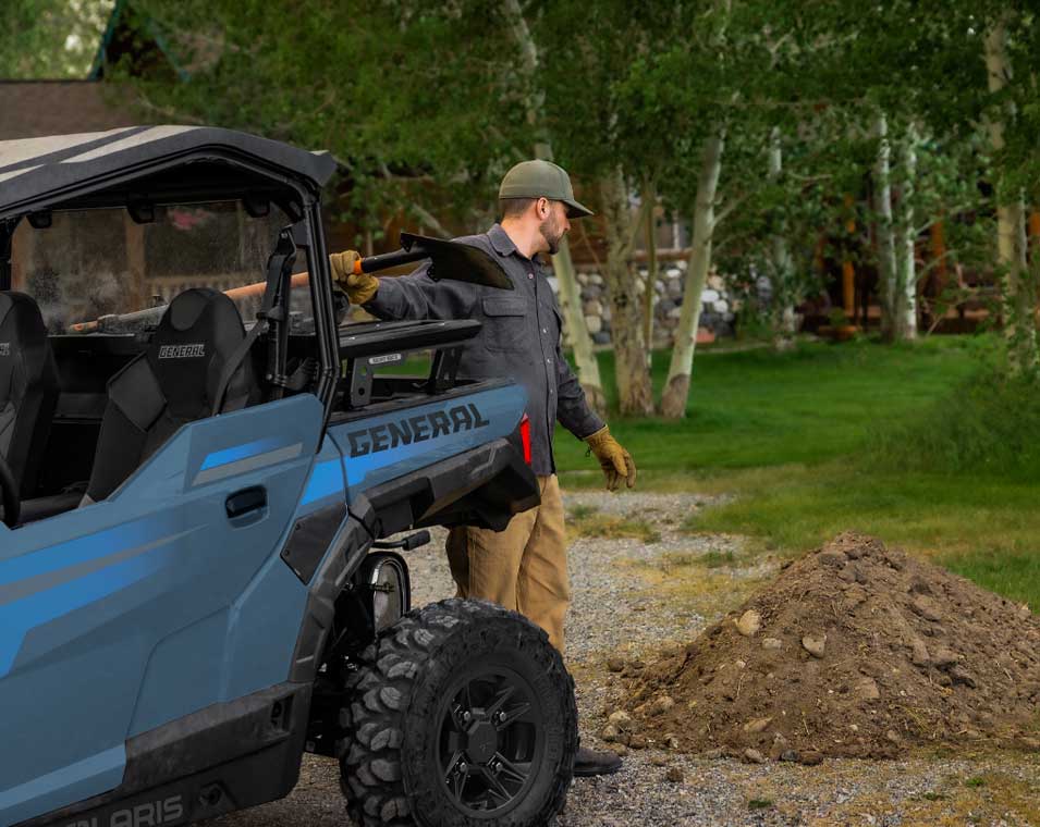 ¿Te enorgullece estar preparado para todo? ¿Quieres una máquina que también lo esté? Hazte con un GENERAL. Desde el transporte hasta el remolque, desde el cabestrante hasta la conducción por senderos, conoce el versátil side-by-side preparado para hacerlo todo contigo.